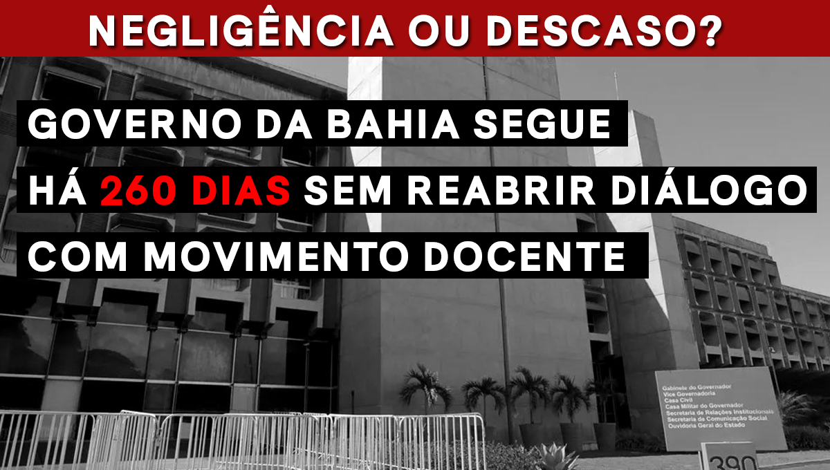 Governo da Bahia segue há 260 dias sem reabrir diálogo com movimento docente